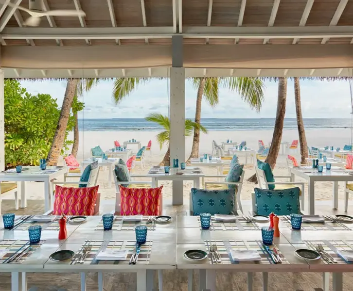 Life at Finolhu is easy to settle into. The island is large enough that nothing feels crowded, with space to move between quieter pools, social areas with music, and long stretches of beach. Days tend to revolve around the water, whether that’s a swim in the lagoon, a paddleboard session, or simply spending hours by the shore. There’s a gym, spa, and water sports centre on hand, but nothing feels forced, you can just dip in when you feel like it.