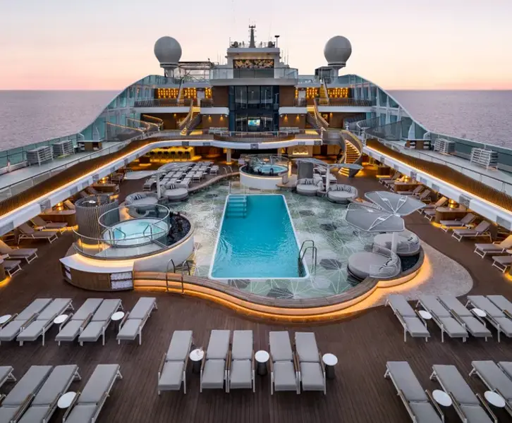 On board, your Veranda Stateroom provides a calm, comfortable retreat. Each cabin features a private teak veranda, ideal for morning coffee. Guests also benefit from Allura’s standout features, such as multiple open-seating gourmet restaurants at no extra charge, relaxed lounges with panoramic views, a serene spa, and a pool deck designed for proper relaxation.