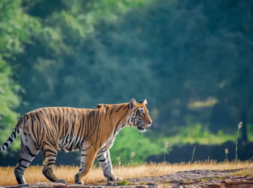 The pace shifts once you arrive at Ranthambore National Park, where forests, lakes, and ancient ruins replace busy streets. Game drives head into the reserve in search of wildlife, from deer and crocodiles to the park’s most famous resident, the Bengal tiger. Later, your journey continues to Jaipur, where pink-toned buildings, bustling markets, and hilltop forts define the city. A visit to the impressive Amber Fort offers sweeping views across the surrounding hills and a closer look at Rajasthan’s royal past.