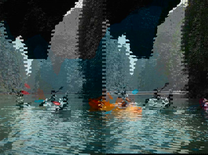 Head further afield to Lan Ha Bay aboard the Bhaya Soul. The limestone karsts are just as impressive as Ha Long Bay, but the waters are significantly quieter. You’ll spend your time kayaking through the Ho Ba Ham area and exploring the Tien Ong Cave, all while enjoying a level of service that includes herbal wellness treatments and fine dining on deck.