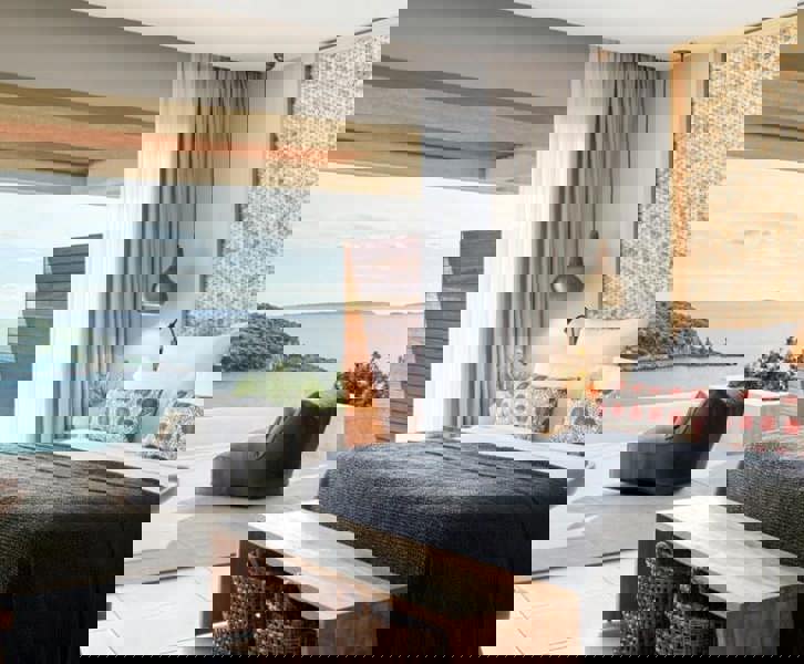 Your Standard Double room provides a comfortable and stylish base for the week. The design is clean and modern, with soft neutral tones and plenty of natural light. A private balcony opens out to Ionian views, giving you space to unwind at the end of the day. Thoughtful details, quality furnishings, and a calm, uncluttered layout make it easy to settle in and feel at home from the moment you arrive.