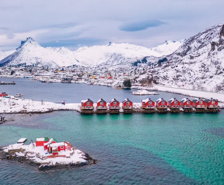Experience the Arctic in its most cinematic form as you sail through Norway’s fjords under winter light, where steep mountains rise directly from icy waters, waterfalls freeze into sculptural walls of ice, and small coastal communities appear like glowing dots against the vast, darkened landscape.