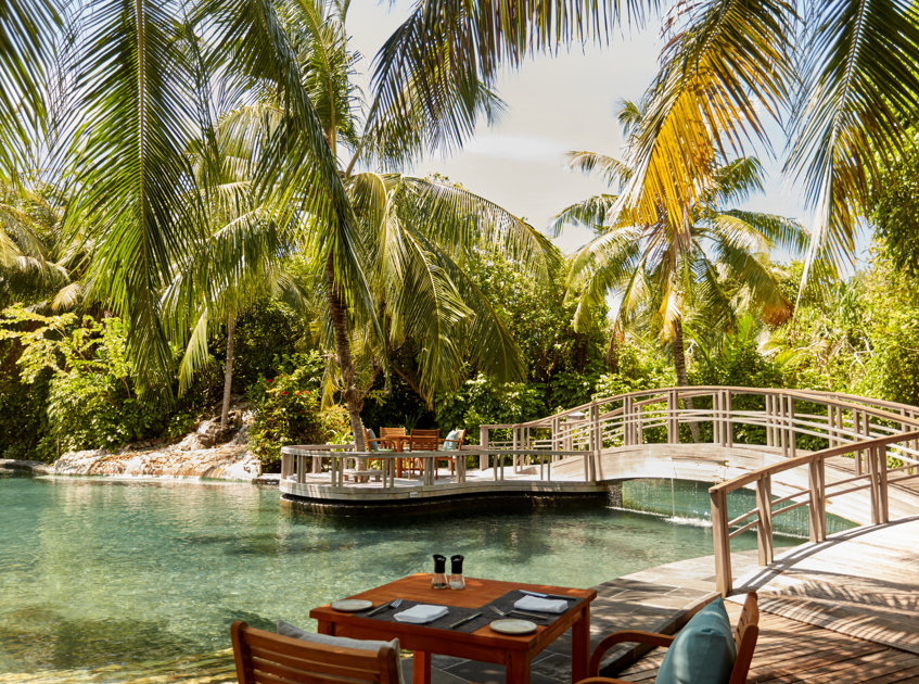 Its location in the far north gives the island a more remote feel than many Maldivian resorts. The house reef is easy to reach and full of marine life, with turtles, reef sharks, and schools of tropical fish often seen just a short swim from shore. On land, you can get around by bike, following shaded paths and passing quiet stretches of beach that rarely feel busy. The resort also makes a conscious effort to stay connected to the local area, sourcing from nearby suppliers where possible and offering excursions that give insight into Maldivian traditions.